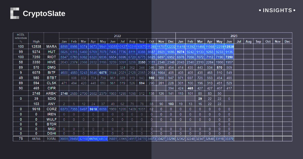 The Bitcoin Micropig has recently put together an informative chart showcasing the Bitcoin holdings of different mining companies from January 2022 to June 2023.