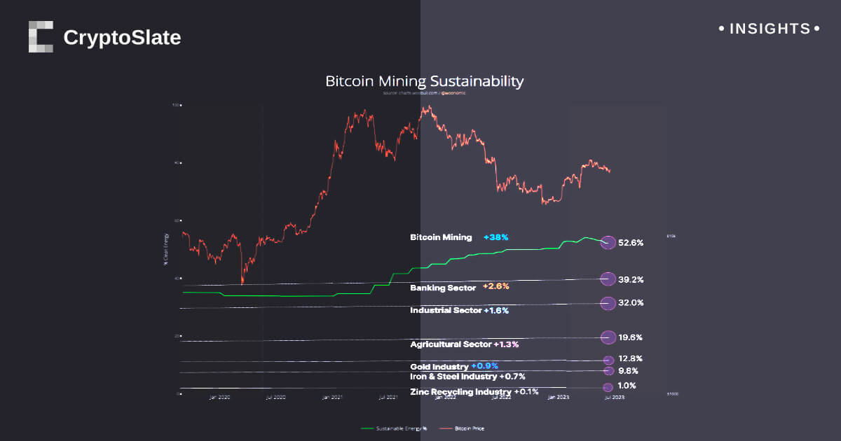 The post Bitcoin mining takes the lead in sustainable energy use, outshining banking sector appeared first on CryptoSlate.