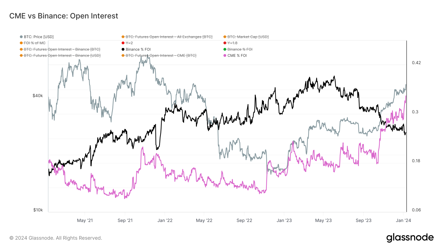 Amid these dynamics, CME continues its dominance, reaching unprecedented highs at 30%. These developments reflect a heightened market engagement and point towards potentially crucial shifts in the Bitcoin landscape.