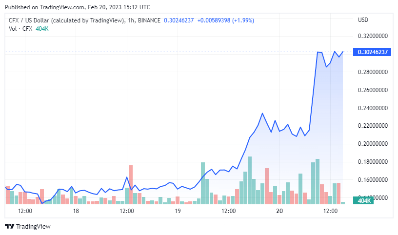 The CFX token is being traded for around $0.303 at the time of writing.