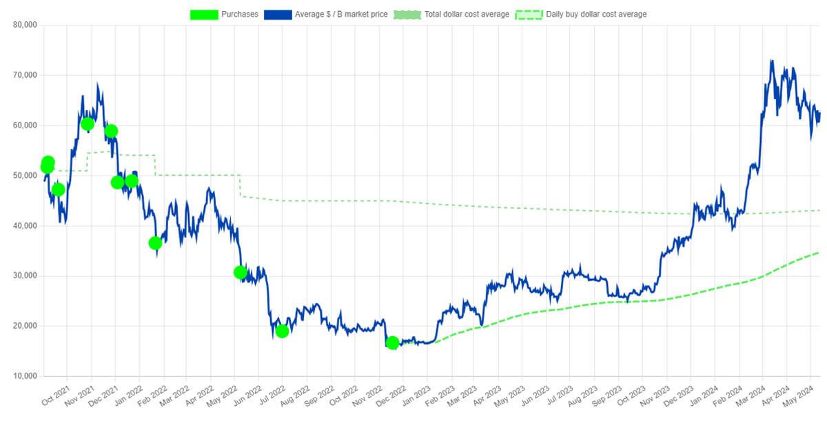 According to the Nayib Bukele Portfolio tracker, El Salvador’s dollar cost average is roughly $43,097, resulting in an unrealized profit of approximately $57 million.