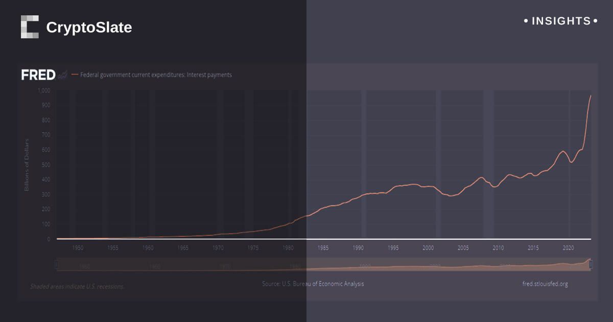 The post Forty-year leap: US national debt nearing $1T in interest alone appeared first on CryptoSlate.