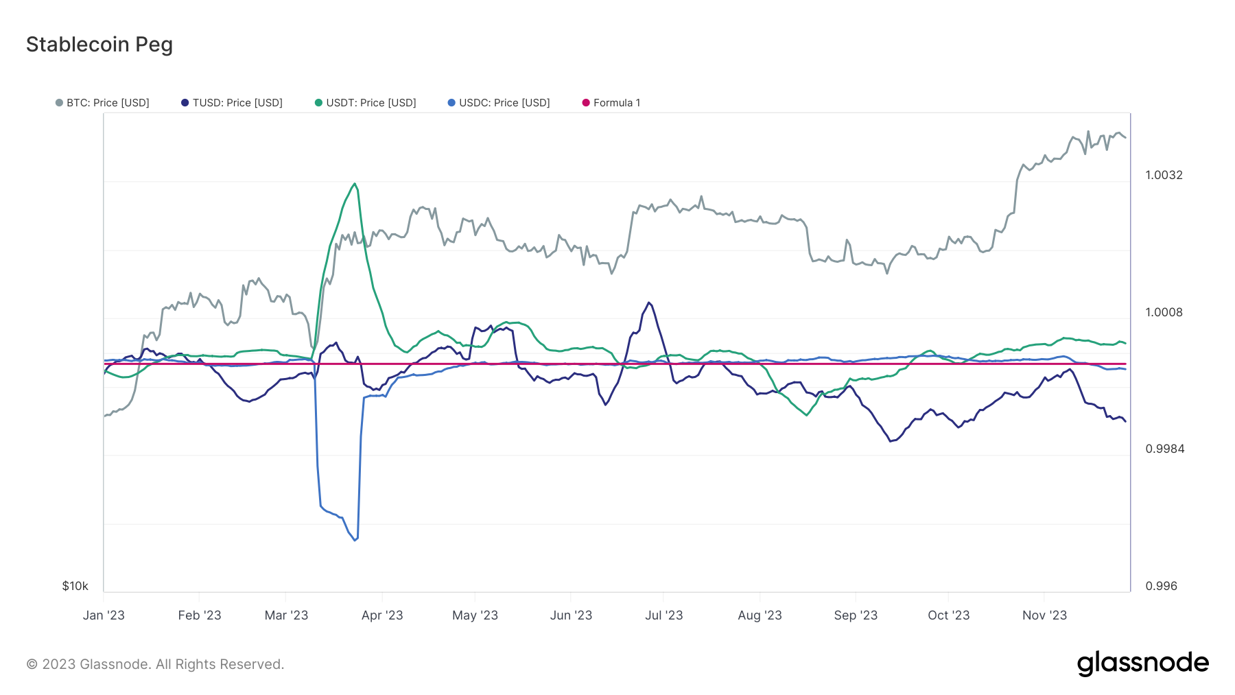 TUSD, however, exhibits the most pronounced discount, reaching one of its lowest for the year, despite trading within a cent of a dollar.