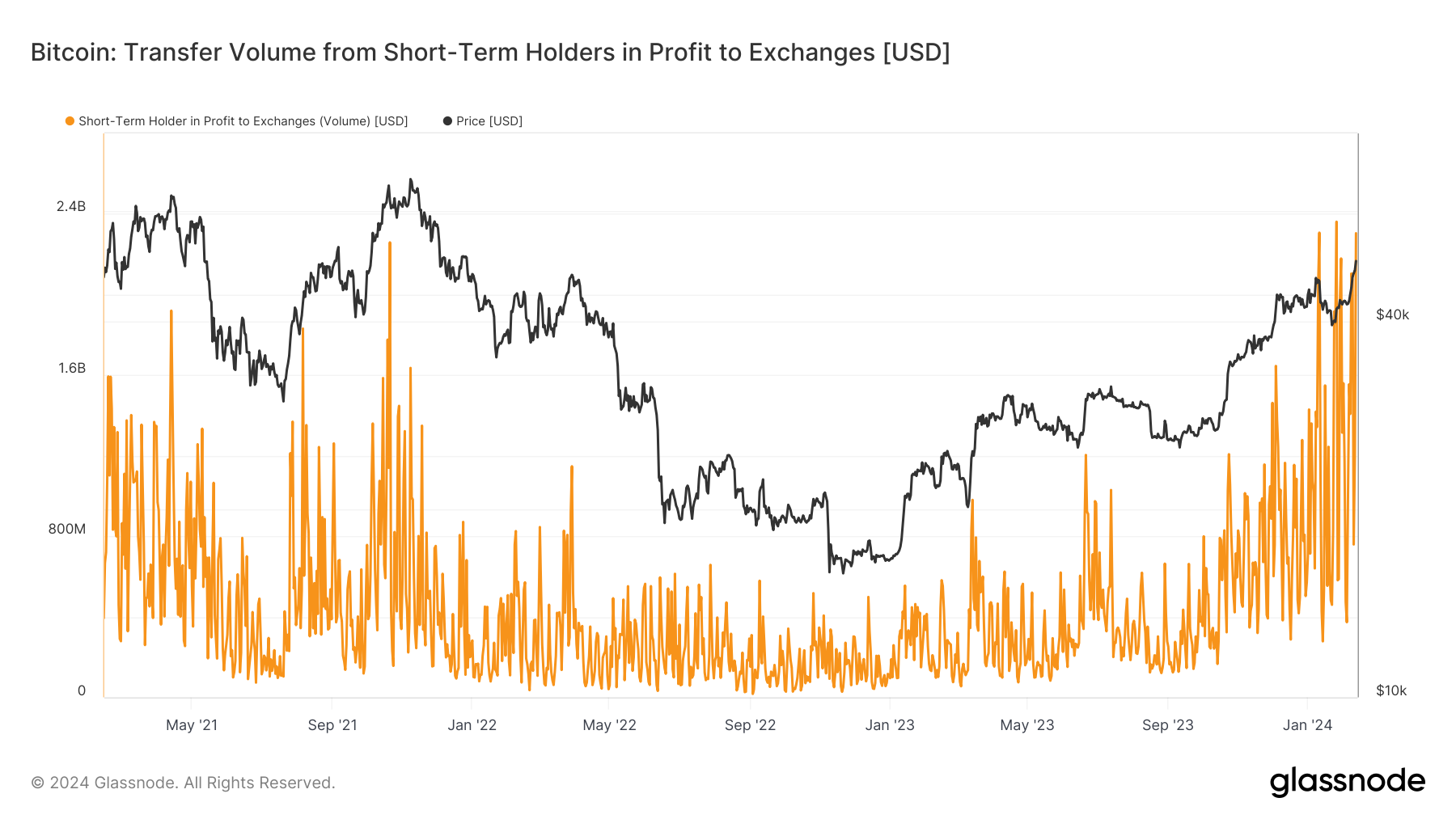 Short term holders in profit sent record Bitcoin to exchanges on road to $50k