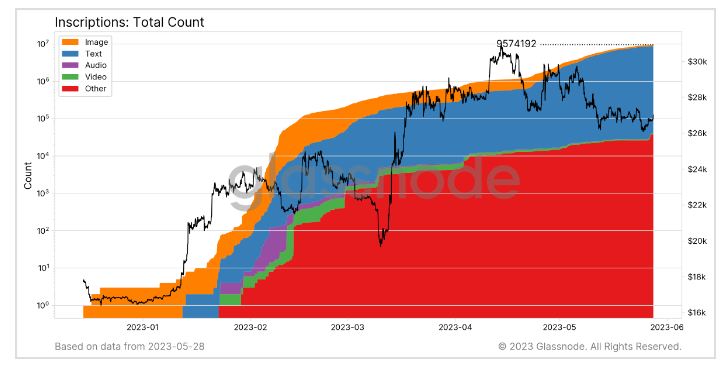 The post Total Bitcoin Inscriptions count approaches 10M appeared first on CryptoSlate.