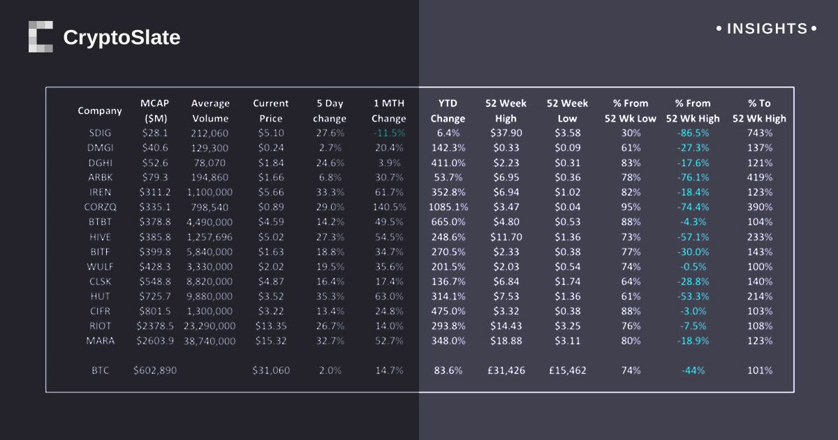 It is, however, important to highlight that despite Core Scientific’s surge, all the miners, including Core Scientific, have experienced a decline from their respective peak values recorded over the last 52 weeks.